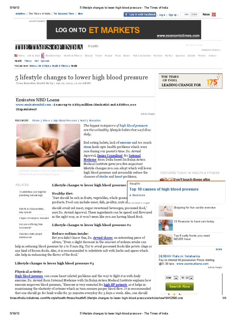 It is well documented that lifestyle changes can lower blood pressure as much as pills can, and sometimes even more, says dr.
